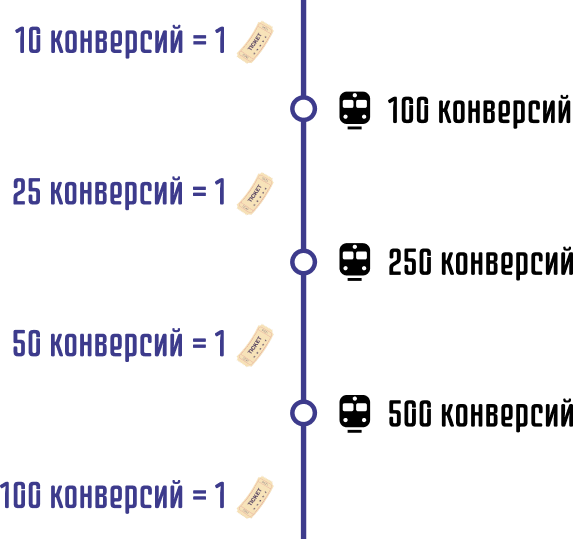 - У каждого оффера свой независимый счётчик конверсий. Лей трафик на все акционные офферы, чтобы в кратчайшие сроки заработать больше билетов и увеличить свои шансы на победу.